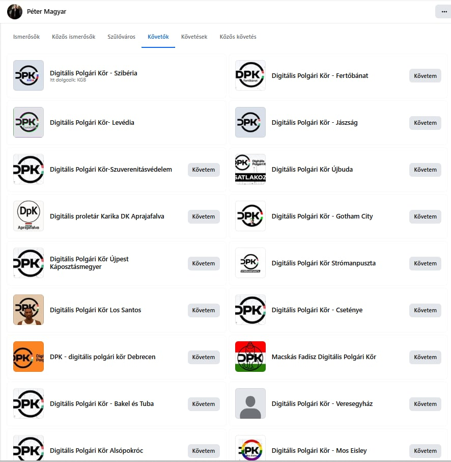 Miközben néztünk az álprofilokat egy másik érdekességre is felfigyeltünk. A hálózat működtetőinek arra is van energiája, hogy több tucat ál-Digitális Polgári Kört is létrehozzanak országszerte.