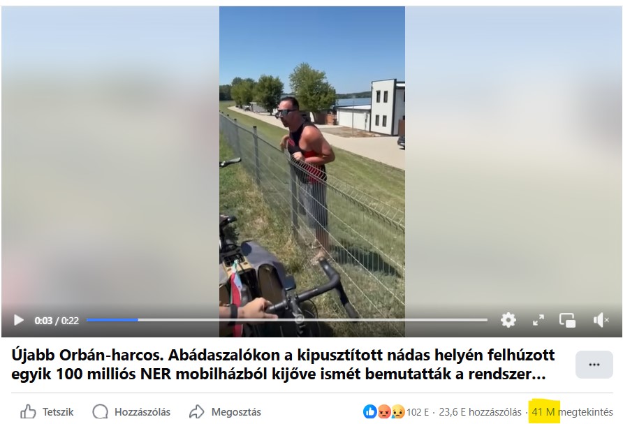 2025. Július 20-án Magyar Péter közzétett egy videót. Egy antipatikus férfi köpködni kezdi a tiszás aktivistákat. Provokatív tartalom, nyilvánvalóan a fideszesek megbélyegzését célozza, de önmagában ez még nem magyarázza a kiugró számokat. Ezt a videót ugyanis Magyar Péter oldalán - elvileg - 41 millióan látták. Igen, jól hallották. Négy és félszer annyian, mint ahányan az országban élnek.