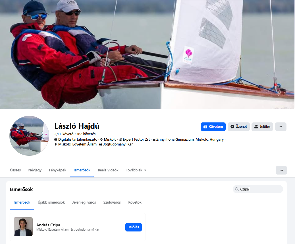 Hajdú hasonlóan közeli viszonyt ápol a másik miskolci körzet győztes jelölt-jelöltjével, Czipa Andrással is. Ezt bizonyítja, hogy a fiatal politikus megtalálható a Facebook-ismerősei között.
