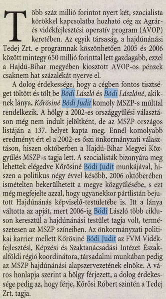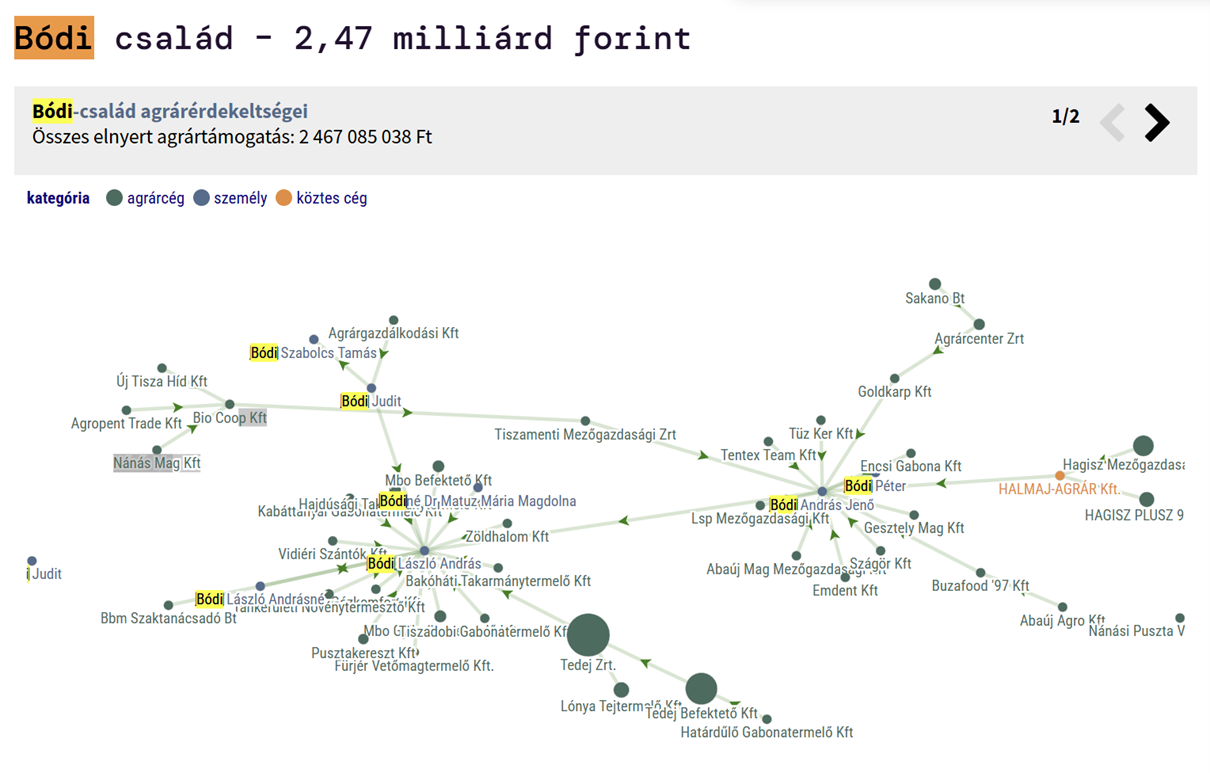 A családi vállalkozás mára egy egész agrárbirodalommá vált, amely számtalan leágazáson keresztül egy komoly uniós támogatási szivattyúként üzemel a Bódi-klán kezében. A család két ága elsősorban a Hajdúságban és Dél-Borsodban tett szert földekre, illetve agráripari vállalkozásokra, amelyek együttesen 2,47 milliárd forint agrártámogatást nyertek el az elmúlt 10 évben- szinte kizárólag Uniós forrásokból.6