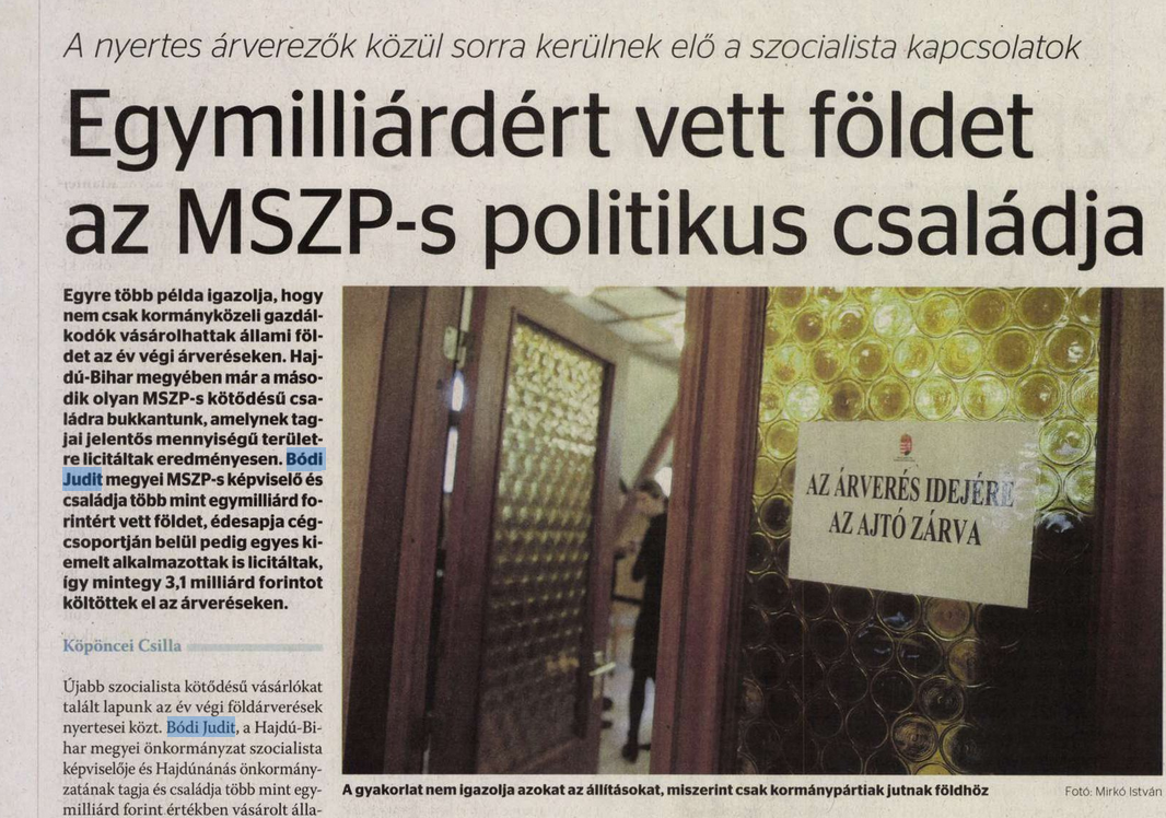 A százmilliókkal kitömött családi vállalkozás ezután hosszabb távon is kifizetődő volt a Bódi családnak, 2016-ban már milliárdos tételekben vásárolták fel a környező állami tulajdonú földeket, amelyeket korábban a családi cég bérelt. A volt szocialista politikus és szintén MSZP-s édesapja 111 hektár földre licitált eredményesen, amelyek összértéke egymilliárd forint környékén volt. Azonban a teljes bevásárlás csak 310 millió forintba került. Az ügyleten tehát mintegy 700 millió forintot keresett a család. Érdekesség továbbá, hogy a családi vállalkozás több vezető tisztségviselője is pályázott a 2015-ös árveréseken, az ő vásárlásaikkal együtt a Tedej Zrt. érdekeltségi körébe 6 milliárd forint értékű termőföld került- töredék áron.