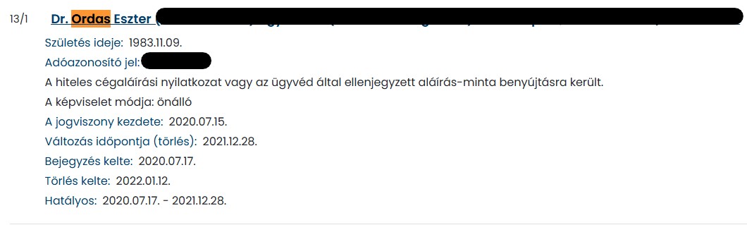 A négy kartellel érintett céget nem csak az ügyvezető és tulajdonos, Dobos Tibor személye, hanem az Opten szerint vele egy címen élő, cégjegyzésre jogosult személye illetve jogi képviselője is összeköti.