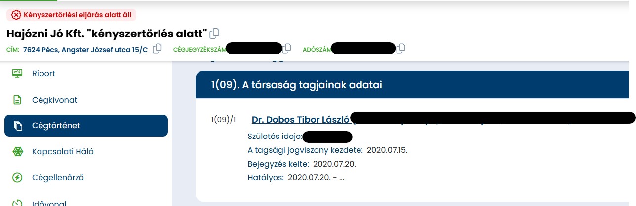 Megnézve a cégadatokat kiderült, hogy Magyar Péter fehérvári jelölt-jelöltje, Dr. Dobos Tibor a Dunai Személyszállító Kft-ben 2021-2025 között ügyvezető volt, míg a kartellben szintén érintett Hajózni Jó Kft-ben ügyvezető és tulajdonos volt ugyanebben az időben.