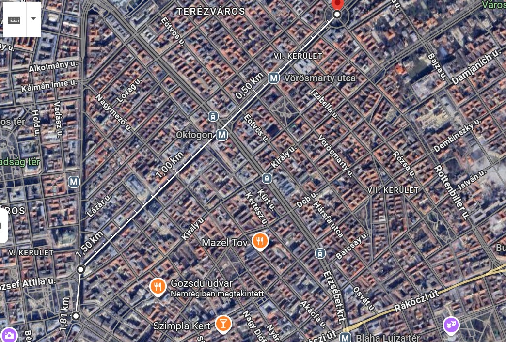 A 24.hu szerint - ahogy idéztük - az Andrássy úton egy rövid szakaszon, a Kodály kőröndig csak a kivetítők környékén voltak emberek Magyar Péter beszéde közben, ott is csak - ahogy a Telex írta - az út közepén. Aztán több tíz méter hosszan megint senki. Vagyis ezen a szakaszon valójában az öt négyzetméterenként számított egy ember is barátságos becslés lenne. Vagyis az 1,7 fő/nm helyett a 0,2 fő/nm....