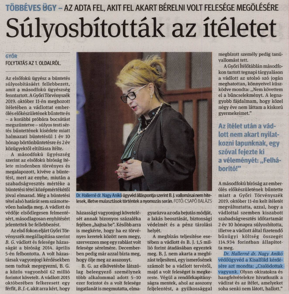 2020-ban aztán azért volt csalódott, mert védence – bár bérgyilkost fogadott fel felesége megölésére – 2 év 10 hónapot kapott másodfokon – súlyosbítva.9
