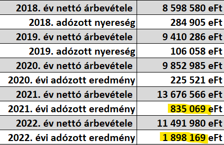 Ráadásul a Bódi-klán bevételei nem különösebben sínylették meg az egyébként gazdaságilag kétségtelenül nehéz éveket, a családhoz köthető vállalatcsoport ugyanis éppen a járvánnyal érintett években könyvelhetett el rekordbevételeket. Míg 2019-ben 106 millió forintos adózott eredménnyel zárt a cégcsoport, 2021-ben 835 millió, 2022-ben már 1 milliárd 898 millió forint maradt a Bódi-klán zsebében.