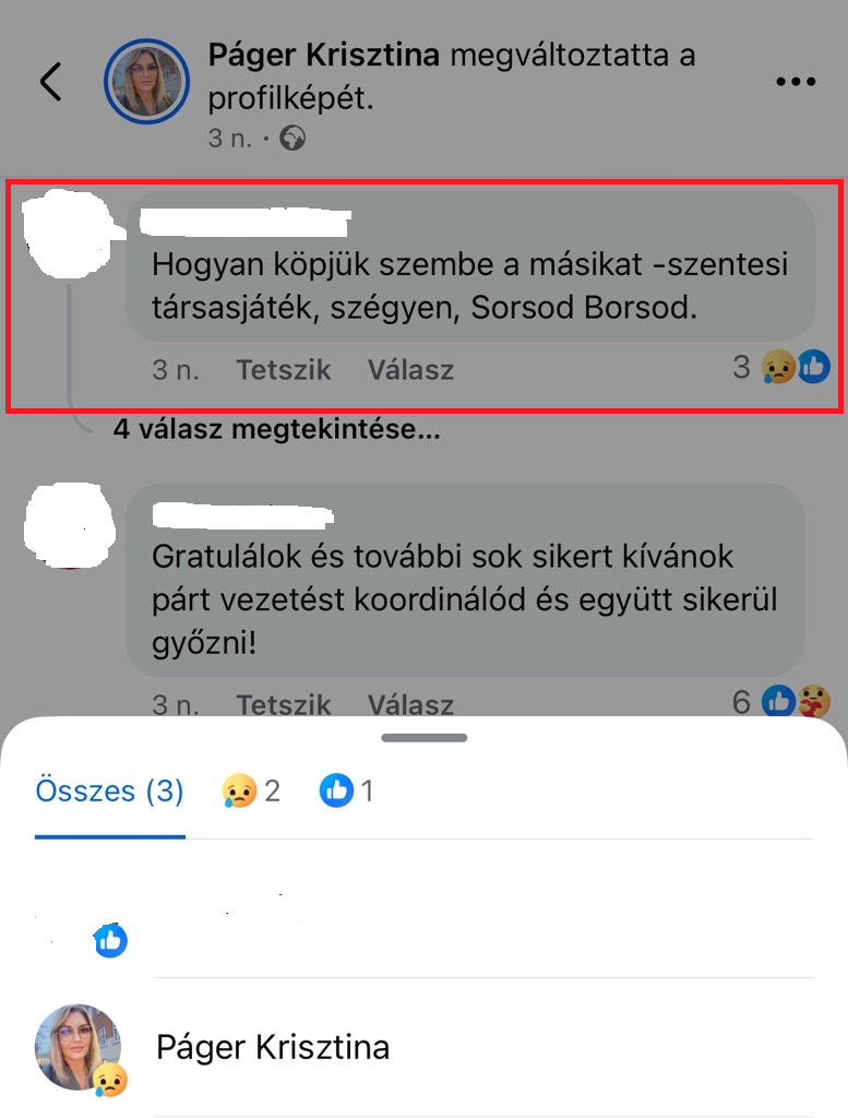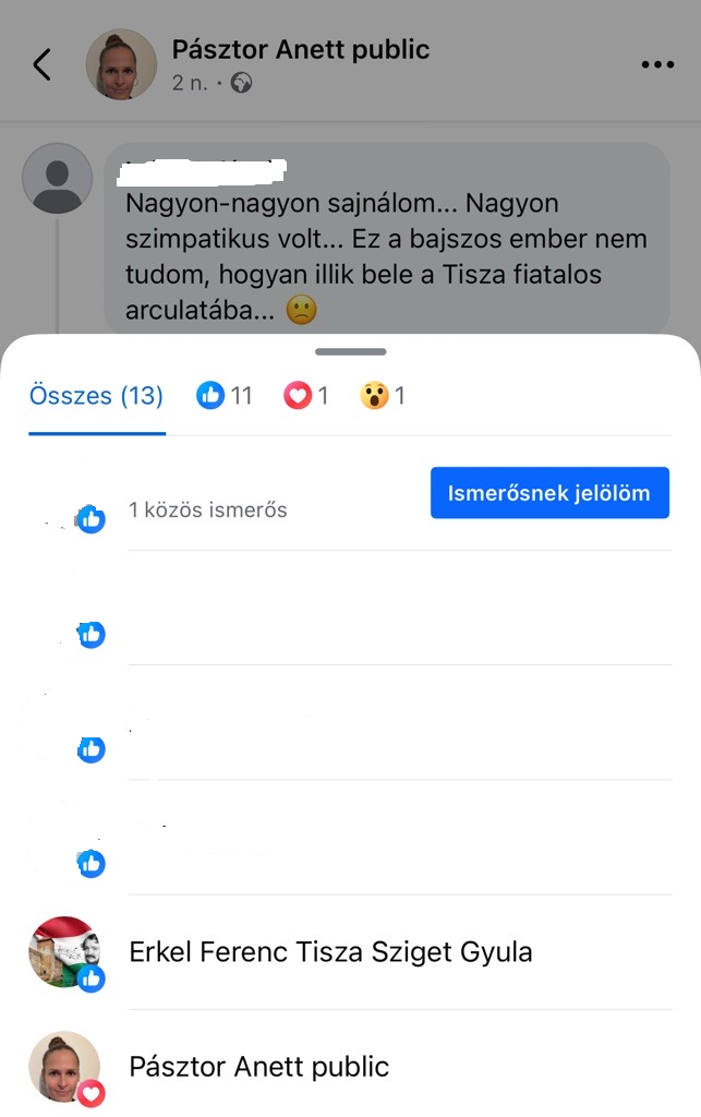 A két politikus közötti feszültségre utal, hogy Pásztor lájkolta a személyeskedő hozzászólást.