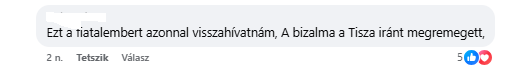 De talán a legerősebb komment az volt, amikor egy férfi arról értekezett, hogy visszahívatná Bárkányit, mert szerinte ajelölt már nem bízik a Tiszában.