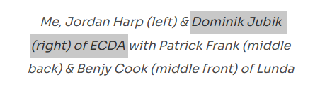 Ez onnan derült ki, hogy a társaság honlapjára tavaly februárban feltöltött egyik írásban az ECDA képviselőjének nevezték. 4 (a nevét helytelenül "Jubik"-nak írták – szerk.)