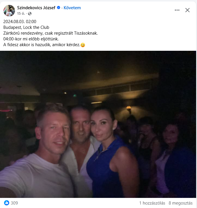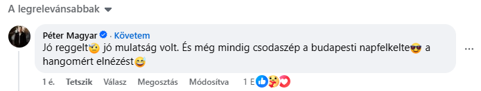 Magyar Péter kétarcúságát mutatja, hogy másnap mintha mi sem történt volna, vicceskedve köszönte meg az előző estét az egyik tiszás Facebook-csoportban.