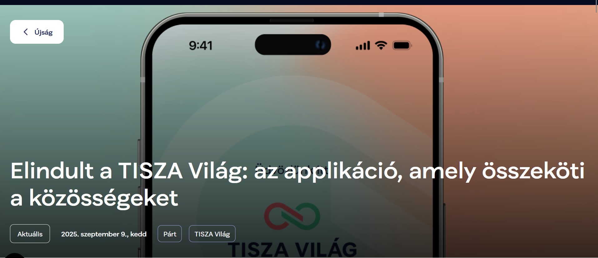 Szeptember 9-én6 jelentette be a Tisza Párt, hogy Tisza Világ néven mobiltelefonos alkalmazást indított, amit két nap alatt százezeren töltöttek le. A leírás szerint: "Az app egyszerű, biztonságos és átlátható módon segíti a közösségi szerveződést, és lehetőséget ad a közös döntésekben való aktív részvételre. A helyi ötletekből akár országos kezdeményezések is születhetnek."