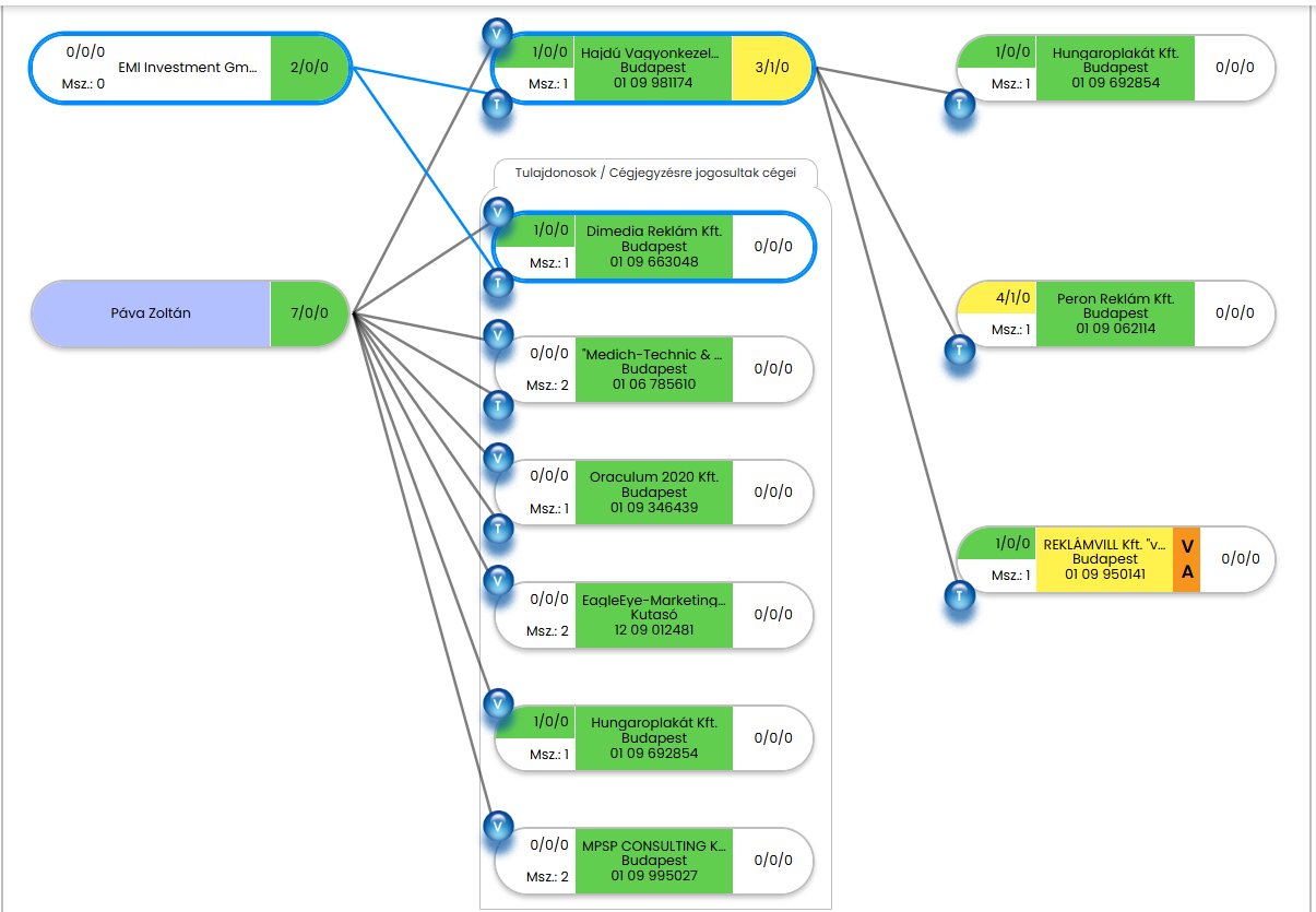 A kapocs a bajorországi Kemptenben bejegyzett tulajdonos, az EMI Invest GmbH, melynek hivatalos képviselője a hazai közéletben ismeretlen Szabóné Kalmár Szilvia. Az EMI Invest(ment) GmbH kissé eltérő (talán szándékosan elírt) névvel, de ugyanazzal a németországi címmel ugyanis szintén megjelenik tagként a Hajdú Vagyonkezelőben. Utóbbi viszont már közvetlenül kötődik a cégjegyzésre jogosult ifj. Páva Zoltánhoz, a Páva tulajdonában álló Oraculum 2020 Kft.-hez.