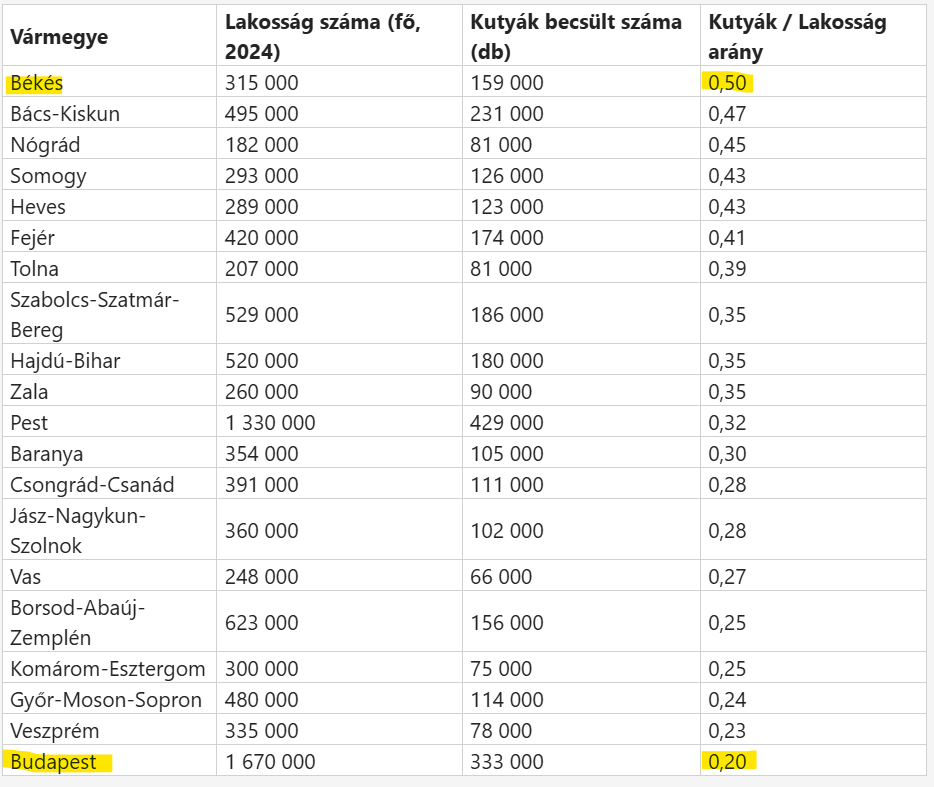 Békés, Bács-Kiskun, Nógrád, Somogy, Heves és Fejér vármegyét érintené legérzékenyebben az ebadó: ezekben a régiókban az egy főre jutó kutyák száma kétszerese a pesti és Pest vármegyei számnak.5