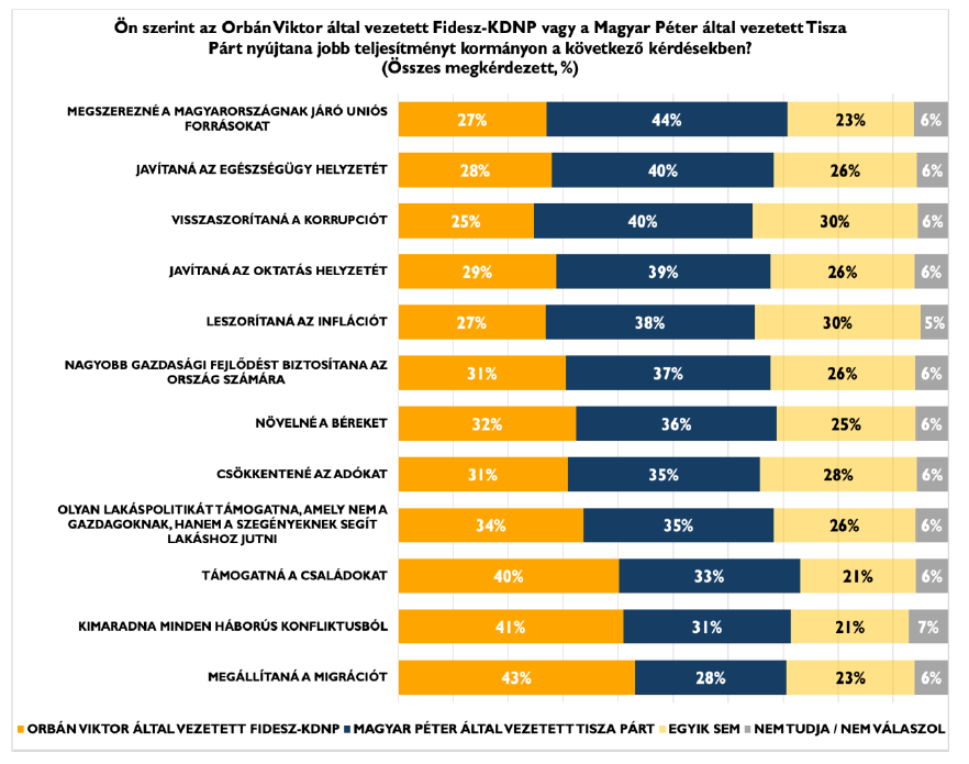 Magát a tanulmányt2 és a cikket is végigfutva ferdítésnek tűnik a következtetés, hiszen a kérdésekben Magyar Péter neve csak mint a Tisza Párt vezetője merül fel. A pártvezetők, politikusok személyes alkalmasságát, annak megítélését nem is vizsgálja a tanulmány.