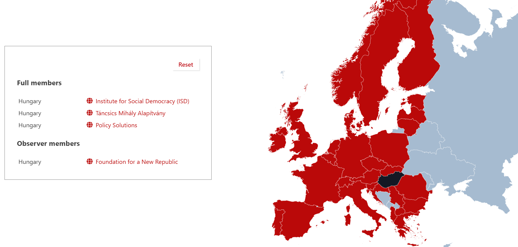 A FEPS honlapján felsorolt három tagintézmény12 között olyan hazai szervezetekkel találkozhatunk, mint például a Szociális Demokráciáért Intézet.13 Facebookos bemutatkozásuk szerint14