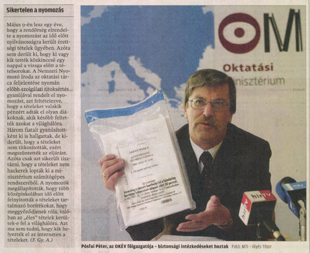 Ebben az évben a történelem érettségi tételeit át kellett írni, a matematikát pedig meg kellett ismételni. Egy évvel későb az OKÉV megszűnt, feladatát az Oktatási Hivatal vette át.