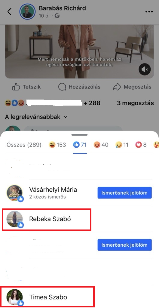 Ezt támasztja alá, hogy közülük többen is lájkolták Barabás bejelentő videóját.