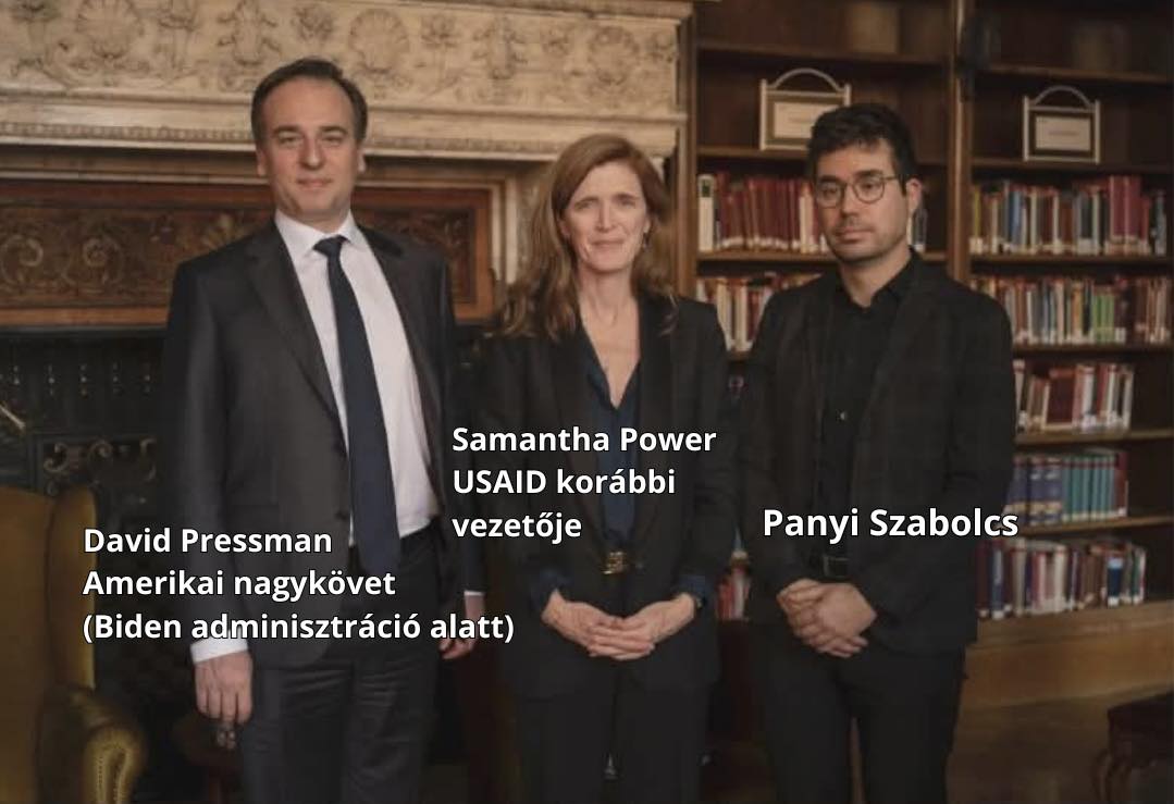 A rosszhírű, és Donald Trump által megszüntetett USAID program elnökeként tevékenykedő Samantha Power, 2023-ban köszöntötte, majd eligazította az általa is támogatott magyar "újságírókat", és mint az alábbi képen is jól látható, épp találkozik Panyi Szabolccsal.