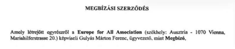 Az Ellenponthoz jutó hivatalos dokumentumok szerint a Gulyás által képviselt szervezet teljes neve: EUROPE FOR ALL - Verein zur Förderung sozialistischer Werte in Zentraleuropa, magyarul EURÓPA MINDENKINEK - Egyesület a Szocialista Értékek Előmozdításáért Közép-Európában.