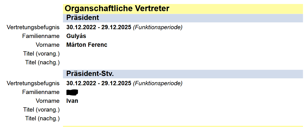 Az egyesületnek két képviselője van: Gulyás Márton az elnök, de van egy helyettese, P. Iván. Utóbbinak azért is van jelentősége, hiszen a dokumentum szerint, az egyesületet az elnök távollétében a helyettese képviseli. Ami gyakori lehet, hiszen Gulyásnak a Partizán miatt Budapesten van dolga.