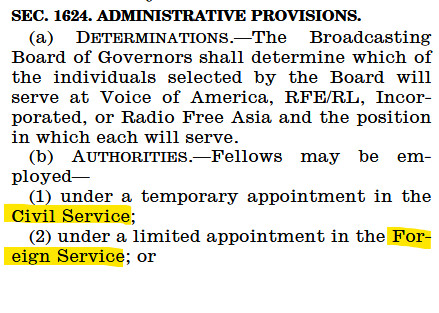 Az adminisztratív rendelkezésekből az is kiderül, hogy az ösztöndíjast a program igazgatói tanácsa osztja be szolgálati helyekre, amely vagy a Szabad Európa Rádió (Radio Free Europe/Radio Liberty), vagy a Voice of America (Amerika Hangja) lehet.