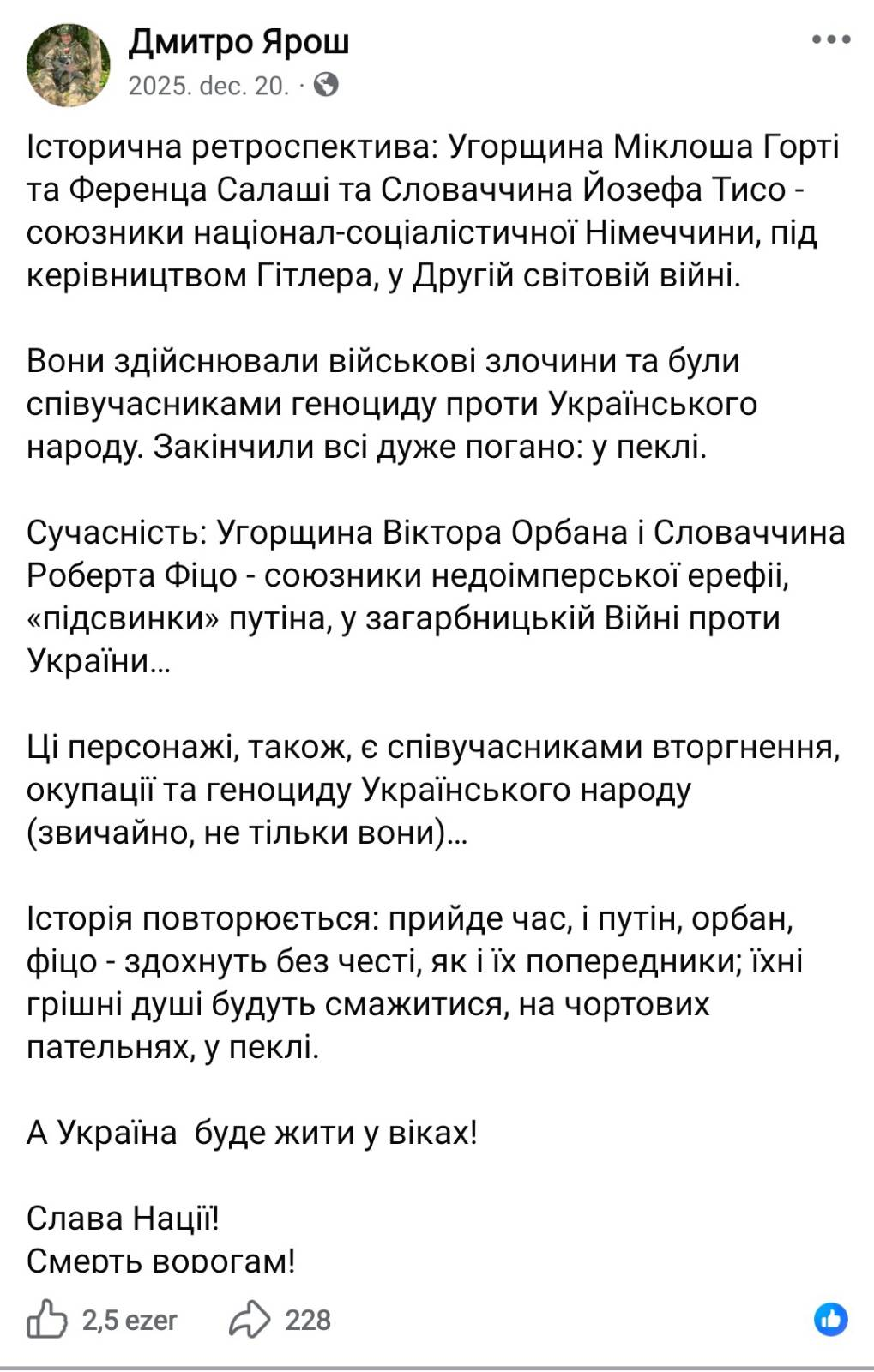 A történelem ismétli önmagát: eljön az idő, amikor Putyin, Orbán és Fico becstelenül fognak megdögleni, akár az elődjeik; bűnös lelkük pedig az ördög serpenyőiben fog sülni a pokolban