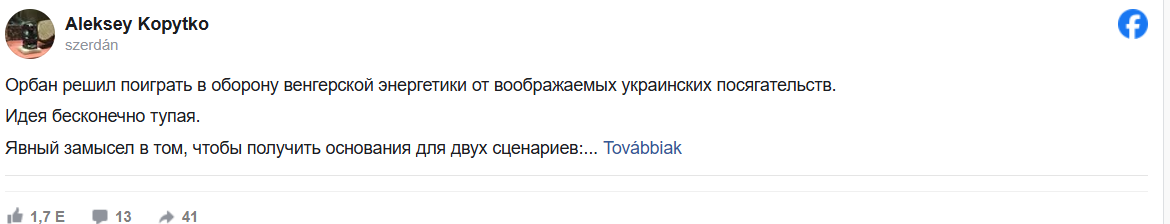 Nagyon jó lenne, ha ezt a mocsok bandát (Orbán és társai) a magyarok végre elmozdítanák a hatalomból, és egy Moszkvától független kormányt választanának… Talán akkor az ukrán és a magyar nép közös nyelvet találna."